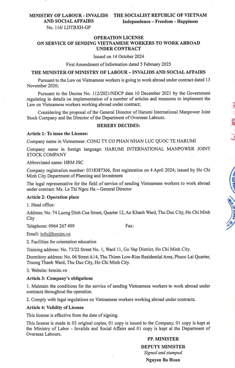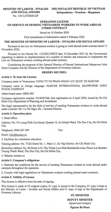 Công ty Cổ phần Nhân lực Quốc Tế Harumi
